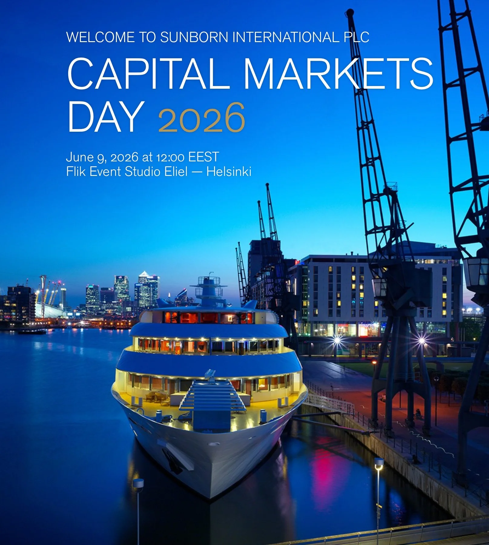 Sunborn International will host a Capital Markets Day for investors, analysts, other capital market representatives and the media on Tuesday, 9 June 2026 at 12:00 Finnish time.
